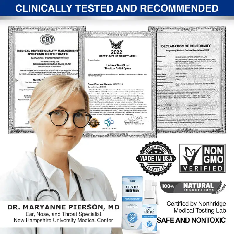 Dr. Naomi Lawrence-Reid,an otolaryngologist at New Hampshire University Medical Center in Massachusetts, and numerous other ENTs have regarded BBOJI™️ Tinnitus Relief Spray as a breakthrough solution for individuals whose tinnitus persists as a chronic hindrance. While some people may experience a reduction or relief of symptoms over time, others find that tinnitus continues to significantly impact their daily lives. BBOJI™️ is considered a highly effective over-the-counter remedy, providing relief from tinnitus and its associated symptoms.