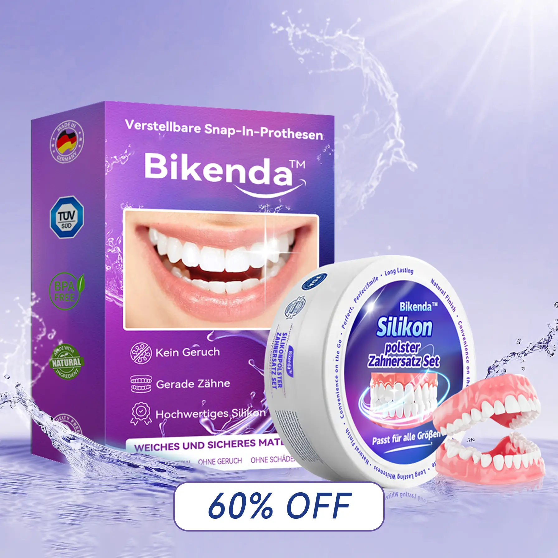 Entscheiden Sie sich fรผr ultimativen Zahnersatzkomfort mit ๐๐ข๐ค๐๐ง๐๐โข ๐๐ข๐ฅ๐ข๐๐จ๐ง๐ ๐๐๐ฅ๐ข๐ง๐ ๐๐๐ง๐ญ๐ฎ๐ซ๐ ๐๐๐ญ. Das aus anpassbarem Silikon gefertigte Set lindert Schmerzen sofort und sorgt fรผr einen dauerhaften, sicheren Sitz. Dieses sichere und ungiftige Set garantiert Zahnersatzstabilitรคt, sodass Sie Ihren tรคglichen Aktivitรคten selbstbewusst nachgehen kรถnnen.