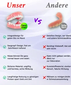 ๐ Einfache Passform, nahtloser Komfort:ย Freuen Sie sich รผber Zahnprothesen, die sich vom ersten Moment an perfekt an Ihren Mund anpassen. Unser hochmodernes Design sorgt fรผr eine bequeme und sichere Passform und bietet auรergewรถhnlichen Komfort, der sich wie ein natรผrlicher Teil Ihres Mundes anfรผhlt. Sie kรถnnen Ihren Tag selbstbewusst und ohne Beschwerden oder Verrutschen verbringen und ohne รrger oder Sorgen essen, sprechen und lรคcheln.