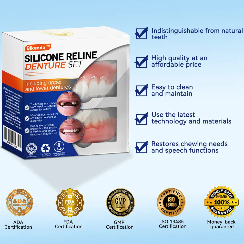 Welcome to Bikendaโข Silicone Reline Denture Set. where state-of-the-art dental innovation meets affordability. Our product offers you professional dentures that look and feel like real dentures. but are not as expensive. Transform your smile and regain your confidence with our easy-to-use. high-quality denture set.