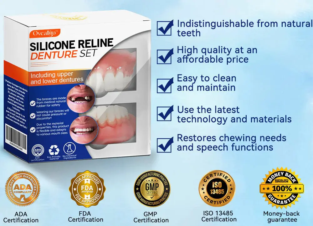 Do you sometimes feel insecure about your smile or crooked teeth? Thereโs no need to go to the dentist for expensive treatment! The Oveallgoโข Silicone Reline Denture Set offers a cost-effective solution to achieve a perfect smile.