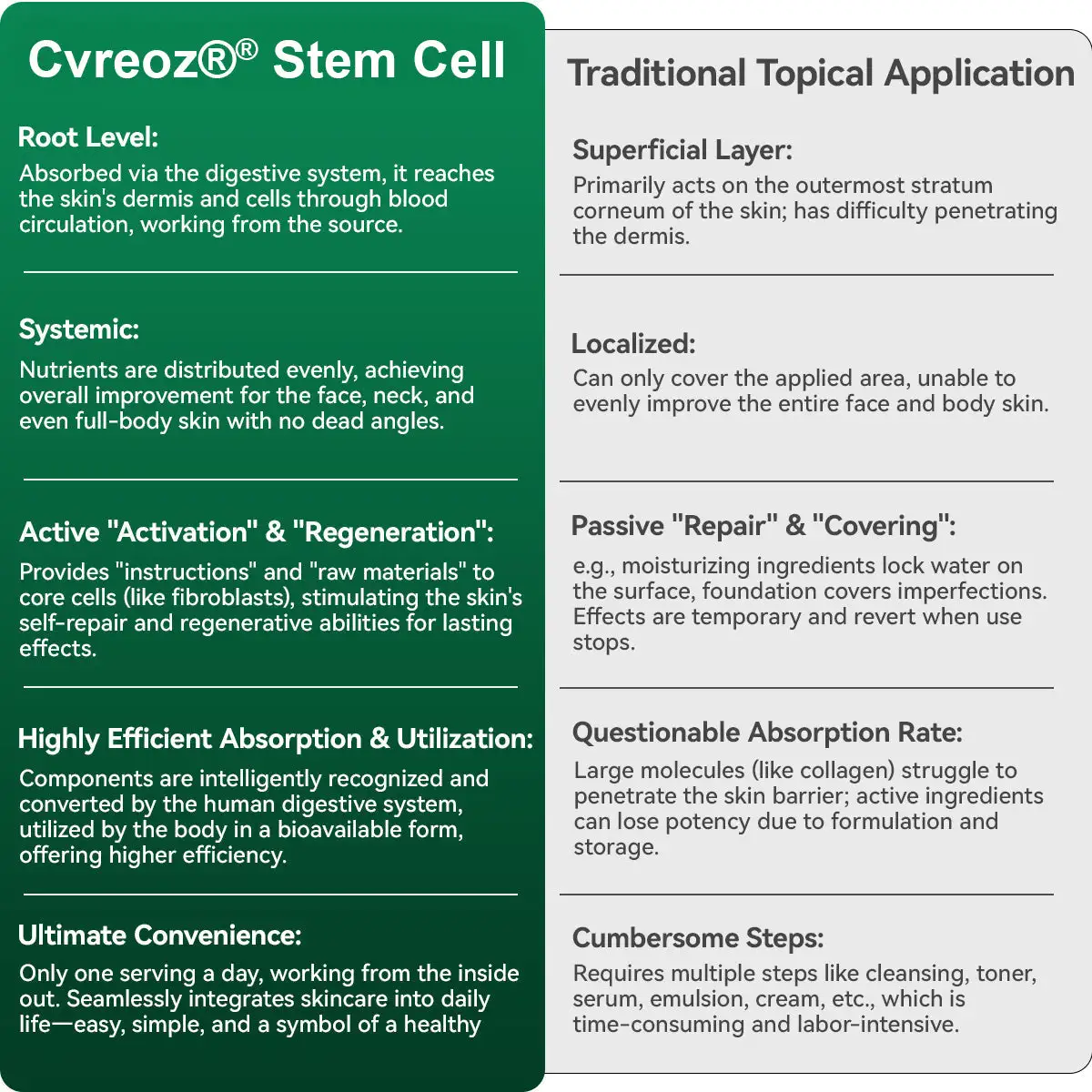 Cvreozยฎ has no scary side effects, is easy to use, and completely safe โ making it the best natural choice for fighting aging and maintaining youthful vitality.