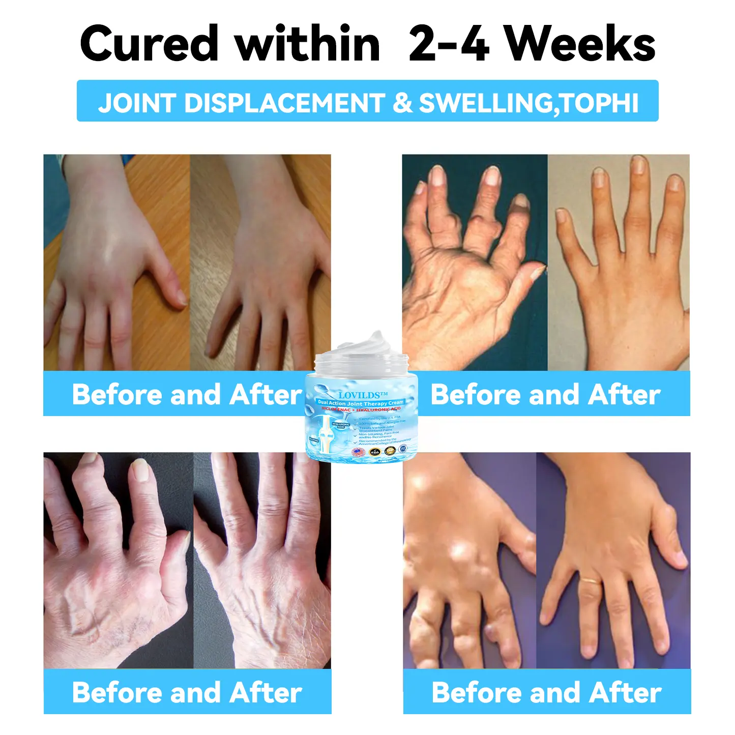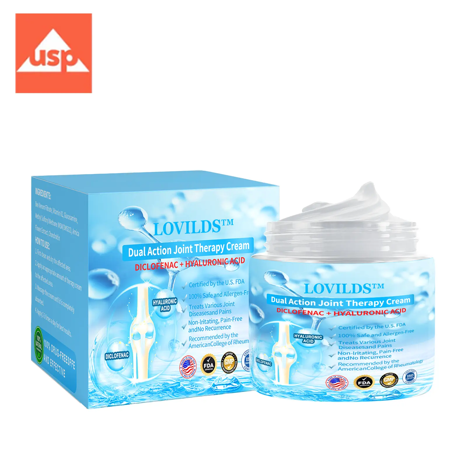 It has been recommended by the USP. This product has undergone stringent quality testing and meets USP’s high standards, effectively relieving pain and promoting bone health. The USP recommendation reflects a high level of confidence in the quality and safety of our products, and you can be assured of reliable results and comfort when you choose our LOVILDSโข Dual Action Joint Therapy Cream.