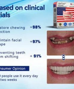 Instant Perfect Smile: Transform your smile instantly with the . Experience the satisfaction of achieving a flawless. customized fit right away. Our innovative denture set eliminates the discomfort of poorly fitting dentures. offering you a snug and natural feel that makes your dentures feel like a true part of your mouth. Say goodbye to sore spots and irritation as Denture Set provides immediate relief. allowing you to enjoy your smile with newfound confidence and comfort. Enjoy a seamless transition to a better-fitting. more comfortable denture experience without delay.