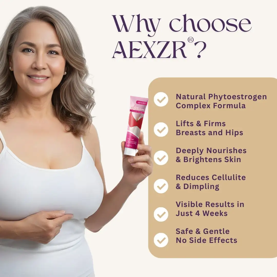 AEXZR® CurveRestore Firming Cream combines 4 botanical extracts to activate estrogen receptors, enhance skin elasticity, and promote fat redistribution. It helps your breasts become firmer, your hips rounder, and your curves naturally elegant.