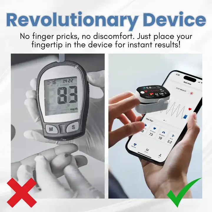 - Non-Invasive Monitoring: No finger pricks or discomfort, just quick and easy fingertip measurements.