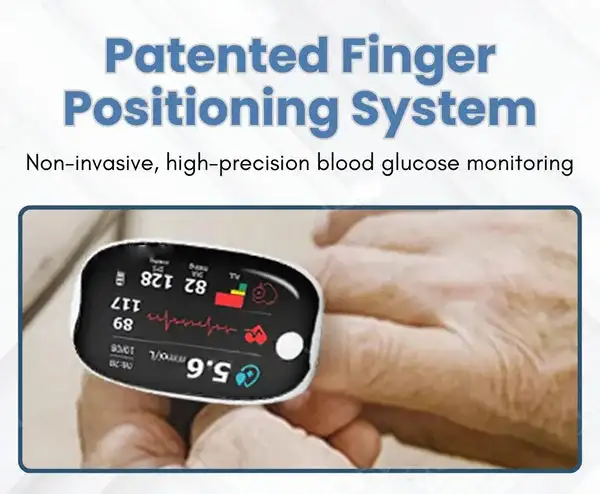 NESLEMY™ is equipped with a patented finger positioning system designed to ensure precise measurements every time. Utilizing dual light wavelengths, the fingertip acts as a transparent medium to accurately measure hemoglobin concentration, blood oxygen saturation, and blood glucose levels. This advanced, non-invasive technology enables high-precision glucose monitoring with ease and comfort.