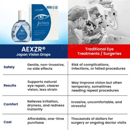 Unlike ordinary drops that only soothe, AEXZR® Japan Vision Drops is powered by advanced compounds that repair, protect, and restore your vision at the root.