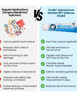 Powered by revolutionary NanoDeep Technology and a pH-balanced formula, Timilk® AlphaArmor Genital HPV Defense Shield penetrates beneath the skin to attack the root of the HPV virus—no harsh freezing, burning, or surgical procedures required. This triple-action cream works to dissolve warts and support your body’s natural defenses from the inside out.