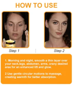 - Morning and night, smooth a thin layer over your neck, legs, abdomen, arms, or any desired area for an enhanced lift and glow.