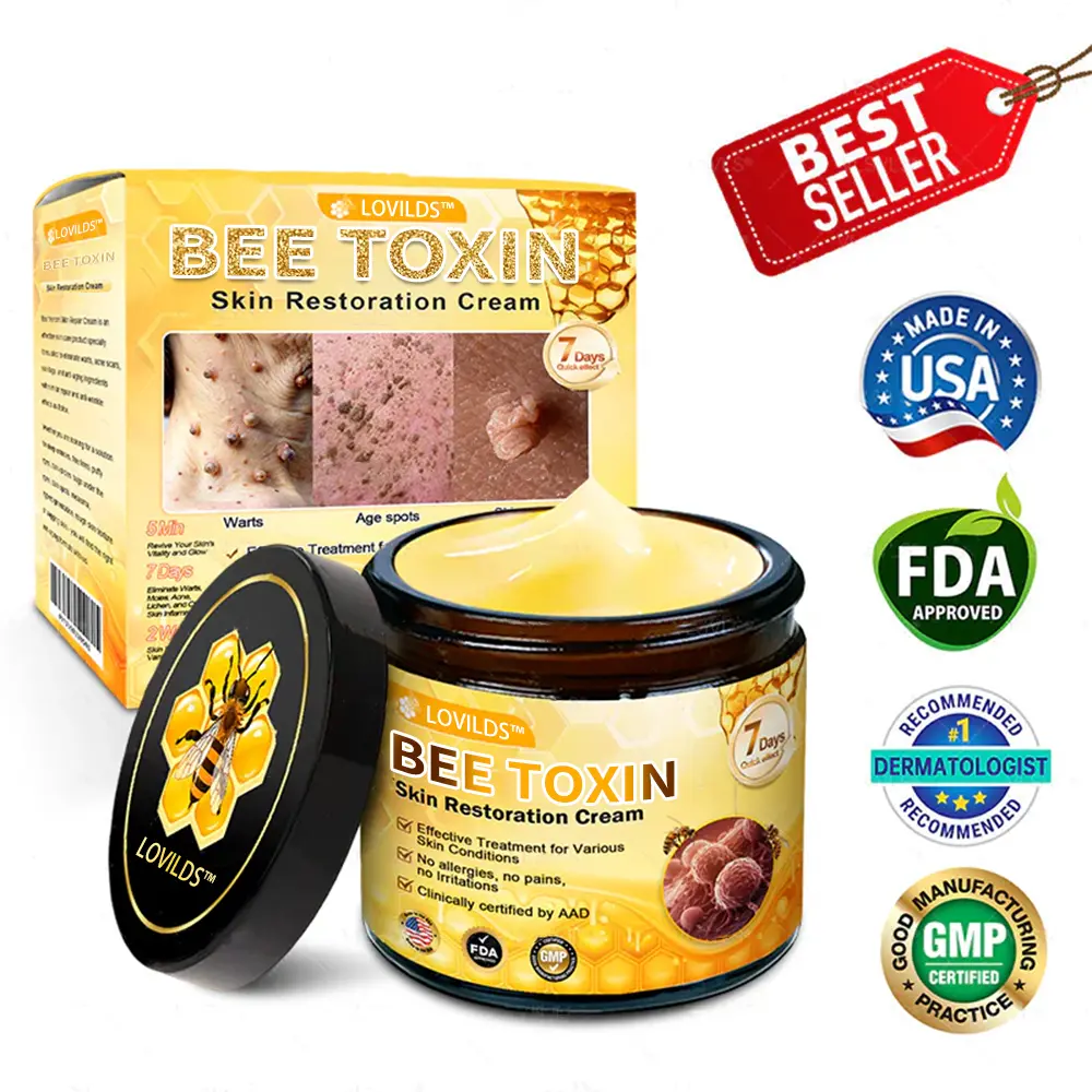 LOVILDS™ Bee Toxin Skin Repair Cream is a clinically proven, -approved solution designed to address common skin imperfections such as warts, moles, skin tags and scars. Developed in collaboration with dermatology experts, this powerful cream harnesses the healing power of bee essence to provide fast, natural relief, restoring clearer, smoother, healthier-looking skin.It completely removes all types of skin problems in just 1-2 weeks.