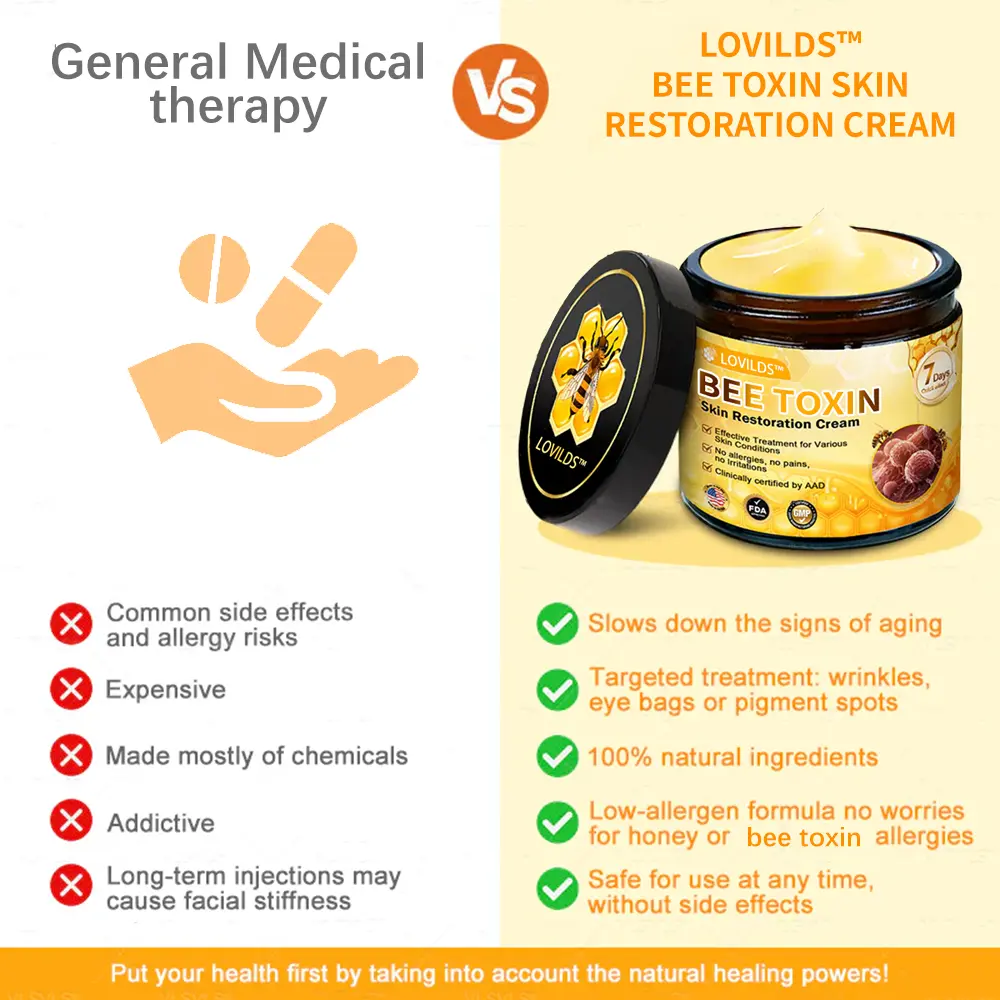 ✅ Scientifically Formulated: The formula of LOVILDS™ Bee Toxin Skin Repair Cream is scientifically developed to maximize its effectiveness in promoting skin rejuvenation and enhancing your overall appearance.