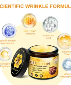 The LOVILDS™ Bee Toxin Skin Repair Cream is an effective solution for diminishing visible signs of aging and wrinkles, resulting in a rejuvenated skin appearance within a span of 3-5 weeks. This cream incorporates scientifically proven ingredients like Sapphire-Infused Triple Peptide, Tri-Hyaluronic Acid and Micro Algae which effectively combat wrinkles and promote skin vitality.