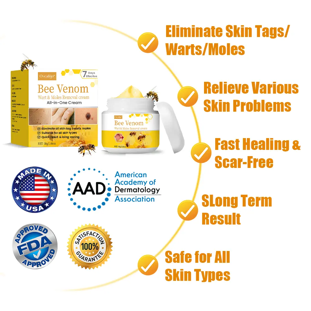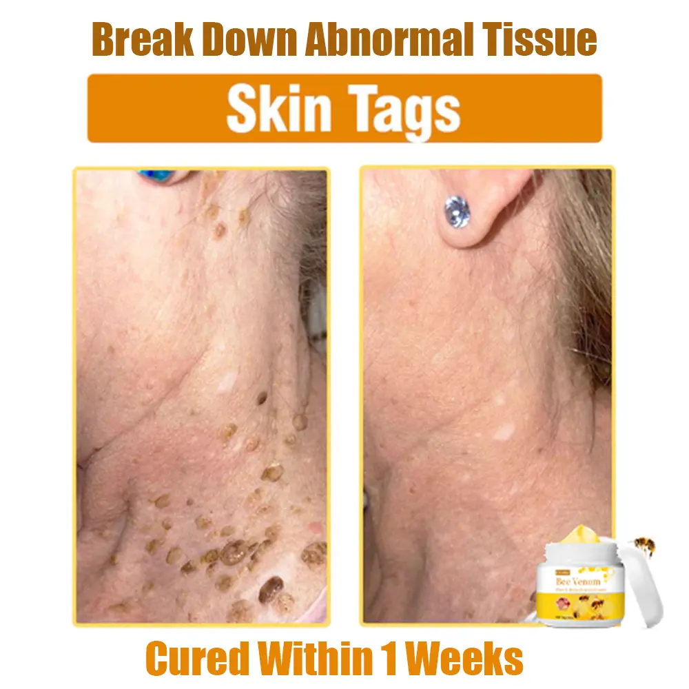 Bee venom contains several bioactive compounds, including melittin, apamin, and adolapin which has been scientifically proven to tackle skin tags or warts effectively. These compounds can break down abnormal tissue, simplifying the removal process of skin tags or warts.