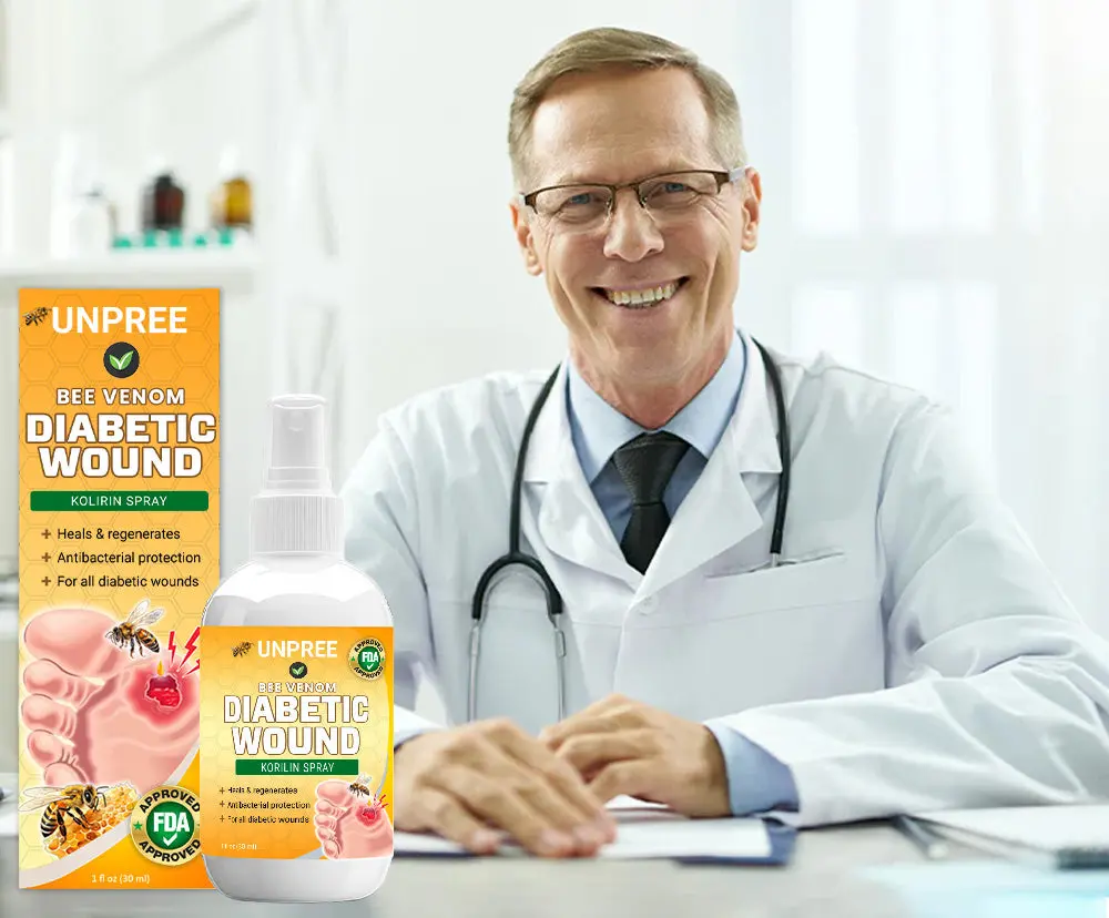 “I’ve been struggling with persistent foot ulcers due to diabetes, and nothing seemed to work. Then I tried UNPREE™ Bee Venom Diabetic Wound Kolirin Spray. The results were remarkable – within a week, the ulcers began to shrink, and the pain lessened. It’s the best choice for managing my diabetic wounds.” – Michael Johnson