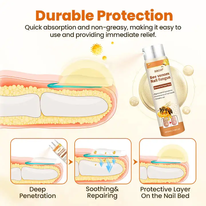 Developed by a team of dermatological experts,BBOJI® FungiBee Advanced Nail Repair Spray is designed to target and eliminate persistent nail fungal infections at their root. Harnessing the potent bioactive compounds in bee venom, this advanced formula delivers powerful antifungal and anti-inflammatory effects deep into the nail bed for visible, lasting results.