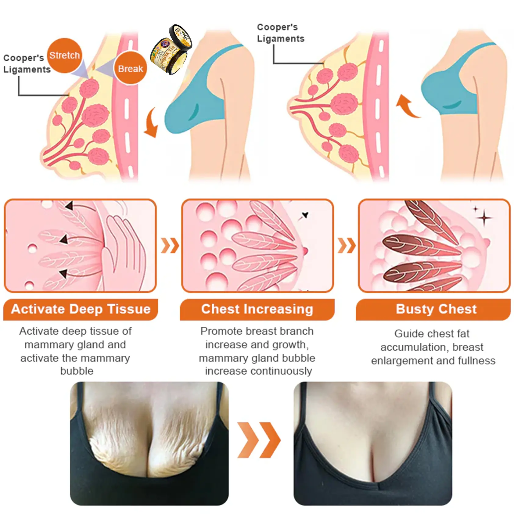 It aids in the firming, lifting, and enlargement of breasts while offering relief from breast pain. Additionally, it serves as a valuable support for various health conditions, including Breast Cancer, Fibrocystic Breasts, Mastectomy, and Post-Operation Care. Excessive estrogen is the primary contributor to breast pain, influenced by factors such as age, nutrition, pregnancy, and hypothalamic-pituitary diseases. To restore estrogen balance in women and alleviate breast pain, we have meticulously developed an all-natural formula. Not only does this essential cream effectively prevent and treat breast diseases, but it also enhances overall health.
