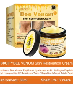 The BBOJI® Bee venom Pro Comprehensive Cream is an effective solution for diminishing visible signs of aging and wrinkles, resulting in a rejuvenated skin appearance within a span of 3-5 weeks. This cream incorporates scientifically proven ingredients like Sapphire-Infused Triple Peptide, Tri-Hyaluronic Acid and Micro Algae which effectively combat wrinkles and promote skin vitality.