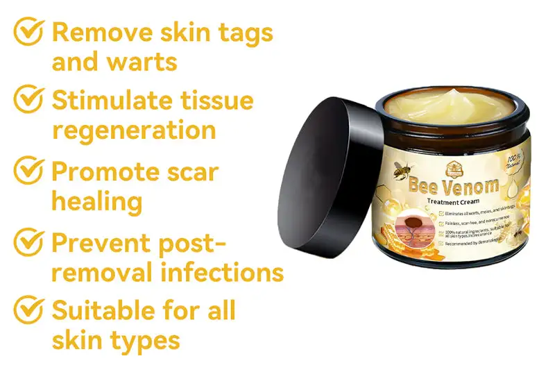 Bee venom comprises multiple bioactive elements like melittin, apamin, and adolapin, which have been scientifically demonstrated to effectively combat skin tags or warts. Notably, among its enzymatic components, phospholipase A2 shines for its capacity to degrade abnormal tissue, streamlining the process of removing skin tags or warts.