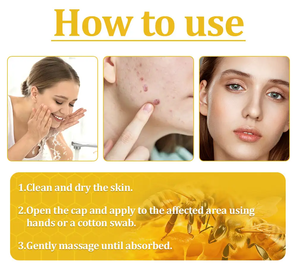 Furthermore, laboratory studies have shown that the constituents of bee venom exhibit antiviral properties. This implies that bee venom may hinder the replication of viruses that might cause skin infections, potentially aiding in infection prevention during the removal of skin tags or warts. Research has demonstrated that bee venom induces apoptosis, or programmed cell death, in abnormal skin cells, resulting in the eradication of skin tags or warts. Its active ingredient destroys wart tissue, encouraging it to loosen and fall off. Apply this wart remover to the face or body to dry and reduce the lesions until they naturally fall off the surface of the skin.