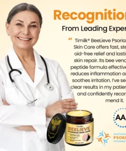 Timilk®BeeLieve Psoriasis Skin Care offers a natural, steroid-free alternative. Its key ingredient, bee venom peptides, helps block inflammation triggers while stimulating collagen production to repair and strengthen the skin. Combined with tea tree oil, licorice root extract, shea butter, and allantoin, it soothes irritation, prevents infections, deeply moisturizes, and restores the skin barrier—delivering lasting relief and promoting healthier, more resilient skin with continued use.