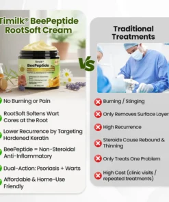 BeePeptide rapidly calms redness & itching,while RootSoft gently softens wart cores and thickened plaques — with zero burning, acids, or steroids.