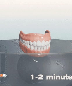 Drop the dentures into warm water (~75°C) for 30 seconds, and they become soft and pliable. Once placed in the mouth, they naturally mold to your unique gum shape.