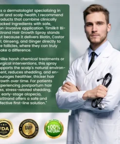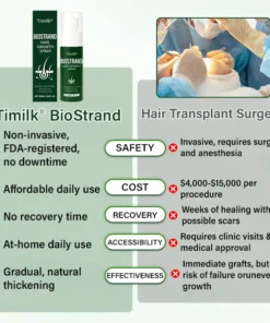 Clinically supported and dermatologist-tested, Timilk® BioStrand Hair Growth Spray nourishes the scalp and strengthens follicles, creating the ideal environment for regrowth. By enlarging follicle size and delivering oxygen-rich nutrients, it supports thicker, denser, and healthier hair. This natural formula helps combat issues like genetic hair loss, DHT-related thinning, and postpartum shedding—leaving your strands visibly stronger and revitalized with daily use.