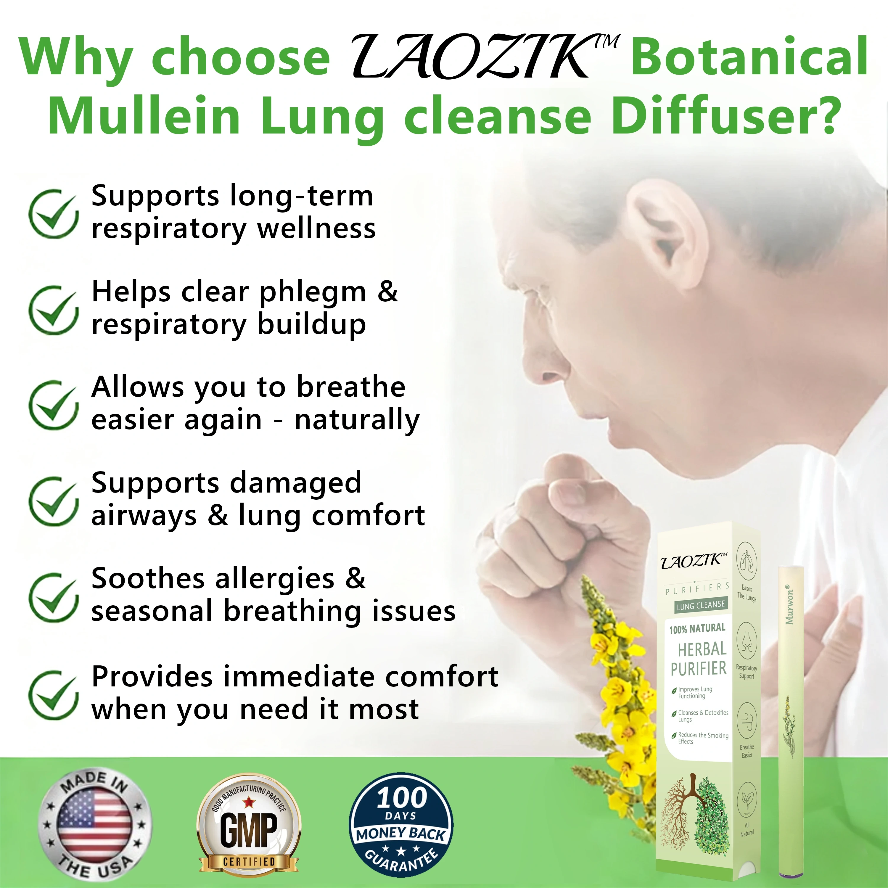 Hear From 150,000+ Satisfied Customers Who Cleared Their Lungs with LAOZIK™ Botanical Mullein Lung Cleanse Diffuser