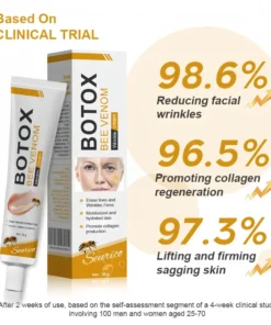 Seurico™ Botox Bee Venom Wrinkle Removal Cream uses bee venom peptides to mimic the effects of Botox, relaxing facial muscles and reducing the formation of expression lines. At the same time, hyaluronic acid deeply hydrates the skin, making it plump and effectively smoothing fine lines and wrinkles. The combination of Acetyl Hexapeptide-8 and botulinum toxin targets deep wrinkles like forehead lines and crow’s feet, leaving your skin looking firmer and smoother.