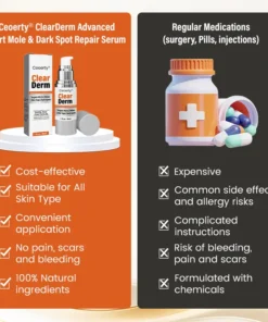 Ceoerty® ClearDerm Advanced Wart, Mole & Dark Spot Repair Serum combines micro-needle delivery with powerful botanical actives to precisely and gently target warts, moles, and dark spots at their root. It effectively dissolves unwanted growths while fading dark spots by regulating melanin production, resulting in smoother, clearer, and more even-toned skin—pain-free and visible within days.