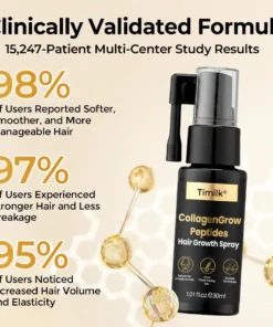 Timilk® CollagenGrow Peptides Hair Growth Spray is a clinically proven solution for hair regrowth, supported by extensive research and published studies.