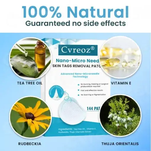 Say goodbye to skin tags, moles, and warts with Cvreoz® – the revolutionary skin solution backed by nanotechnology and expert dermatological endorsement. Utilizing Nano-Micro Needle penetration, Cvreoz® delivers active healing compounds directly beneath the skin’s surface, targeting abnormal skin growths at the root. This painless and non-invasive technique helps dry out, shrink, and eliminate skin tags, warts, and moles effectively, while promoting natural skin regeneration. See visible results in days – not weeks – and restore your skin’s natural smoothness without scarring or irritation.