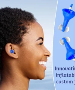 - Comfortable: Unlike traditional earplugs that you have to squeeze to fit, Paxauris’ patented design inflates for a soft seal that gently conforms to your ear canal.