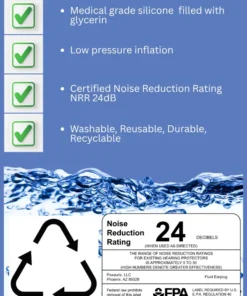 - Materials: Made from skin-safe, medical-grade silicone and filled with water and pharmaceutical-grade glycerin (food ingredient, used in skin care products, often used by audiologists to soften earwax).