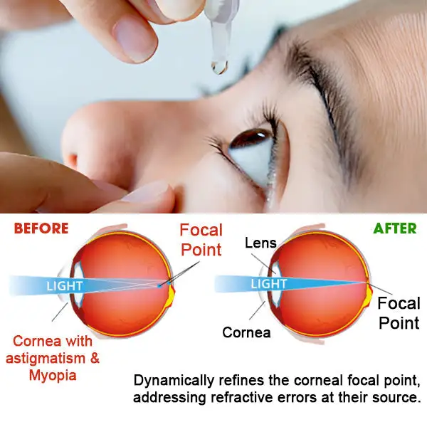 A1: LOVILDS™ Eye Care Drops operate through a scientific approach, recalibrating the light focal point on the cornea to address the root causes of astigmatism and myopia. This precise adjustment enhances overall ocular function, optimizing the trajectory of light and providing a transformative solution for clear vision.