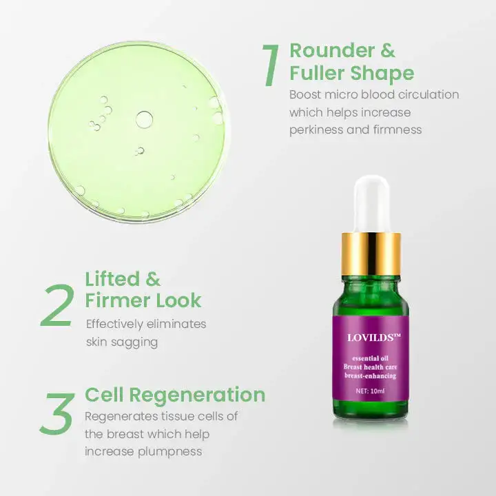 Dr. Rachel Evans, a highly respected board-certified dermatologist with over 15 years of experience in treating various skin conditions, highly recommends LOVILDS™ Bust Firming Natural Essence Oil. This natural formula is the perfect solution for a variety of skin concerns, including neck lines, sagging arms, drooping breasts, sore breasts, stretch marks, cellulite on the tummy, thighs, and buttocks, as well as sagging in the buttocks area. Unlike other treatments, LOVILDS™ offers an effective solution without any adverse side effects.