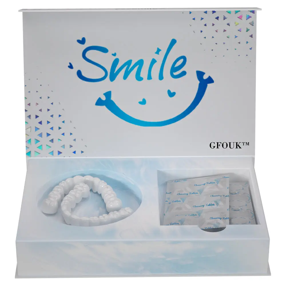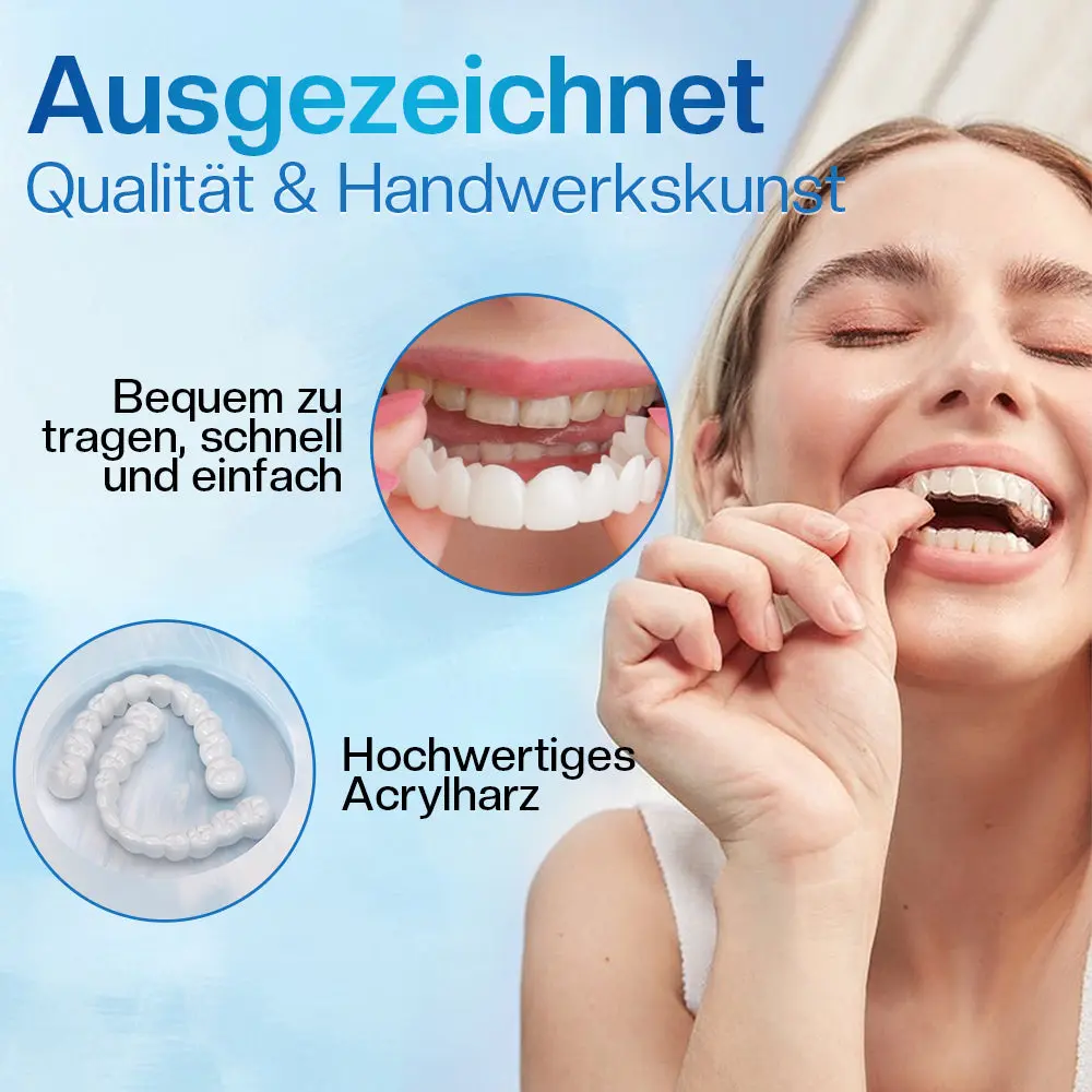 - Einfach zu verwenden: Einfach die Prothesen auf die Zähne setzen – kein Kleber erforderlich.