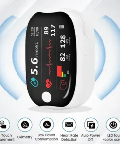 The Oveallgo™ Blood Glucose Monitoring Device uses advanced non-invasive technology to measure your blood glucose, heart rate, and blood oxygen levels without the need for painful finger pricks. Simply insert your finger into the device, press the button, and within 5-8 seconds, you’ll get accurate results.