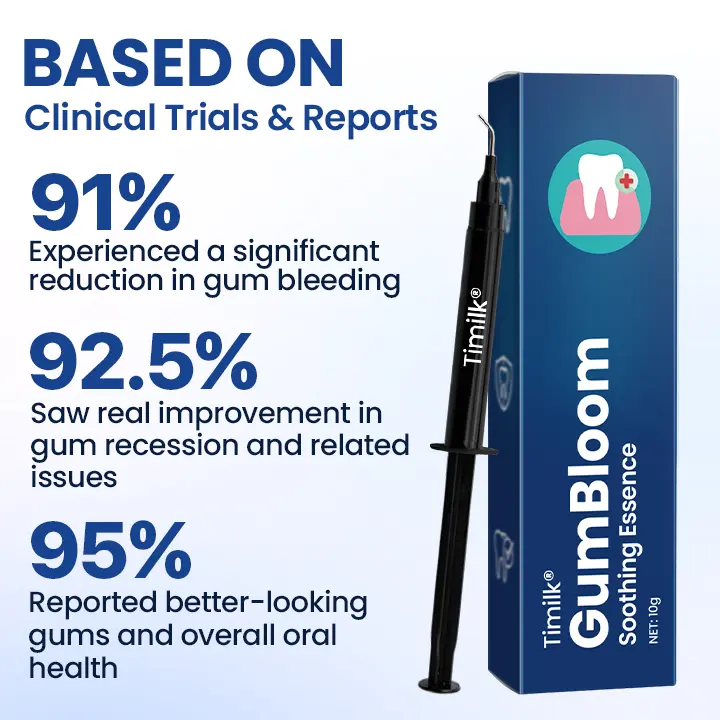 Without timely intervention, gum recession can lead to alveolar bone loss, tooth instability, and eventual tooth loss.Early care with scientifically developed solutions like Timilk® GumBloom Soothing Essence can support tissue regeneration, strengthen the gingival barrier, and restore oral comfort.