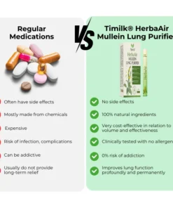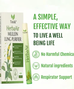 Timilk® HerbaAir Mullein Lung Purifier uses a potent blend of herbal extracts like Mullein, Sea Moss, Loquat Leaf, Ginger Root, Lobelia, and Sophora Flavescens to detoxify, repair, and revitalize your lungs. It’s specially formulated to combat damage caused by smoking, pollution, and allergens, clearing mucus, soothing inflammation, and restoring healthy lung function.