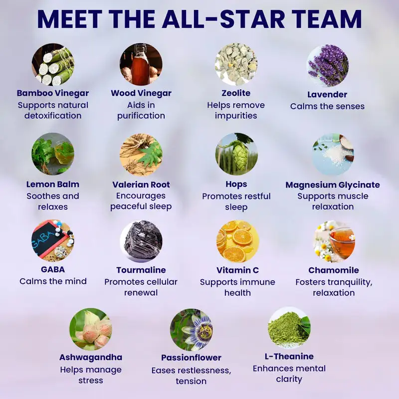 Bamboo Vinegar – Known for its strong detoxifying properties, it helps draw out waste, toxins, and excess moisture from the body.