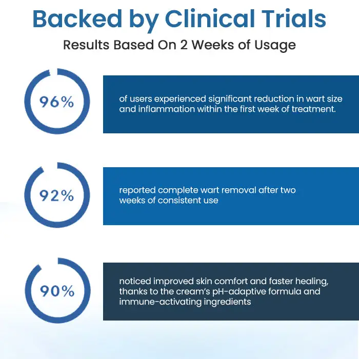 Proven Efficacy: Clinical studies demonstrate 94% success rate with complete wart elimination in 8-10 weeks.