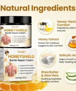 Timilk® HoneyShield Barrier Repair Cream is formulated with a honey-derived comfort complex designed to support skin that feels dry, itchy, rough, or easily irritated.