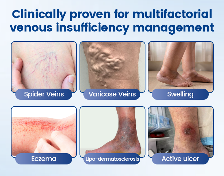 Bioactive compounds modulate endothelial function, strengthen venous wall integrity through enhanced collagen synthesis, and restore competent valvular function by reducing inflammatory mediators. This biological repair process re-establishes normal venous return, reduces hydrostatic pressure, and facilitates the natural regression of varicose veins through improved venous drainage.