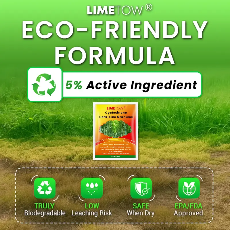 LIMETOW® Cyclosinone Herbicide Granules is manufactured using 100% organic, non-toxic ingredients in accordance with sustainable agricultural standards. The product has been formulated to ensure that it poses no harm to the environment, wildlife, or domestic pets. It is an eco-friendly solution that supports safe gardening practices while maintaining the well-being of surrounding ecosystems.