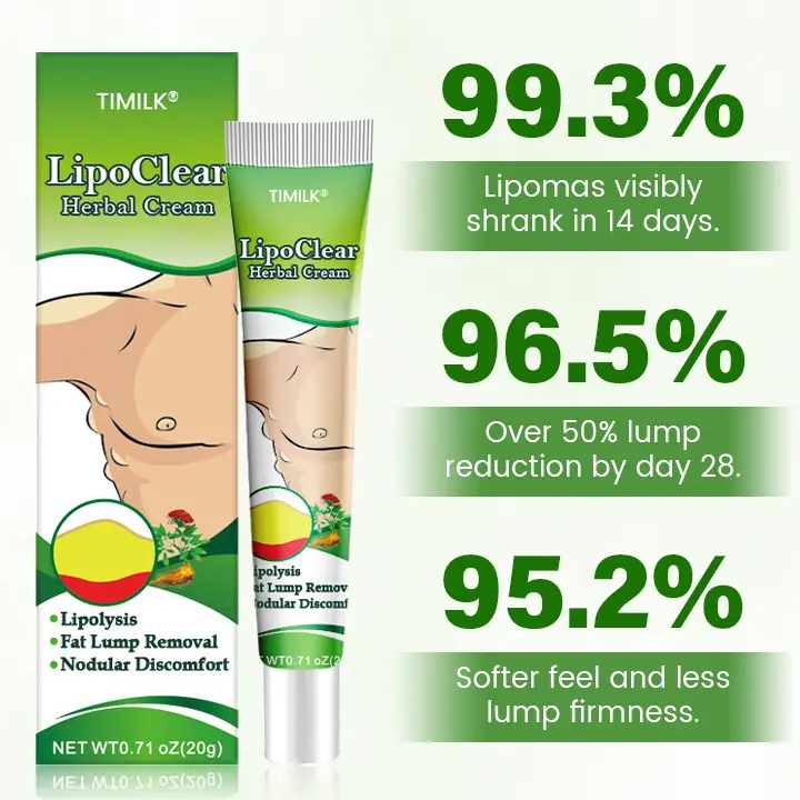 Ready to reduce fatty lumps and feel the difference? Timilk® LipoClear Herbal Cream is your go-to solution for dissolving lipomas, relieving localized discomfort, and restoring natural circulation. Powered by saffron, ginger, and herbal extracts, it works to break down fatty tissue, improve microcirculation, and support skin repair—naturally. Apply it and start seeing visible results today!