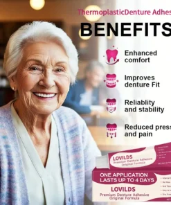 Experience a new standard of denture comfort and confidence with LOVILDS® FirmHold Denture Adhesive. Powered by advanced heat-activated technology, it forms a personalized, secure seal that adapts perfectly to your gums — providing up to 15 days of slip-free hold. Enjoy every meal, every conversation, and every smile knowing your dentures stay perfectly in place — comfortably and naturally.