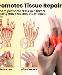 Support long-term joint strength and bone health naturally. The synergistic action of magnesium oil and bee venom doesn’t just relieve pain—it helps strengthen your joints and bones over time. Bee venom enhances local blood circulation and promotes tissue repair, while magnesium supports healthy bone mineralization and density. Together, they help protect against joint degeneration, improve overall musculoskeletal health, and reduce the risk of osteoporosis—making Cvreoz® an ideal long-term companion for anyone seeking lasting relief and stronger joints.