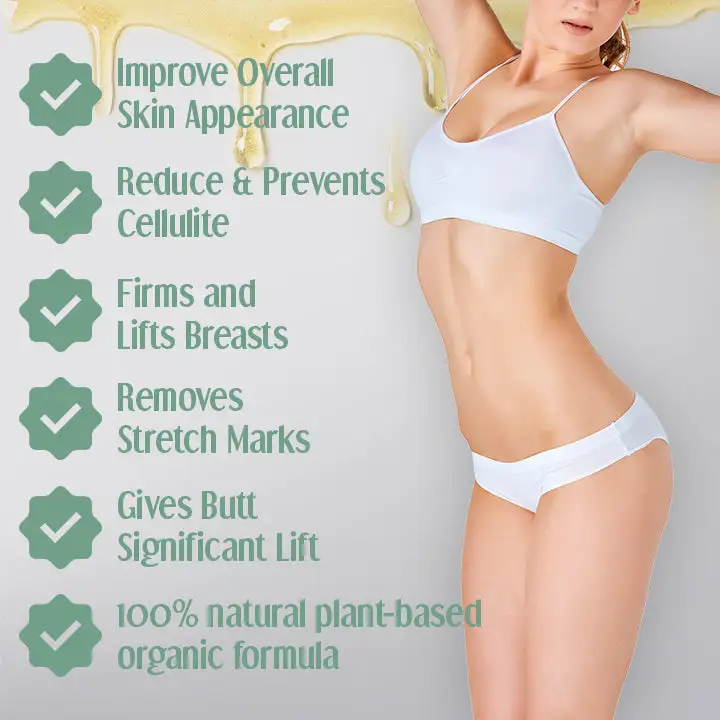 - Apply 2-3 drops over your neck, legs, abdomen, arms, or any desired area for an enhanced lift, firm and glow.